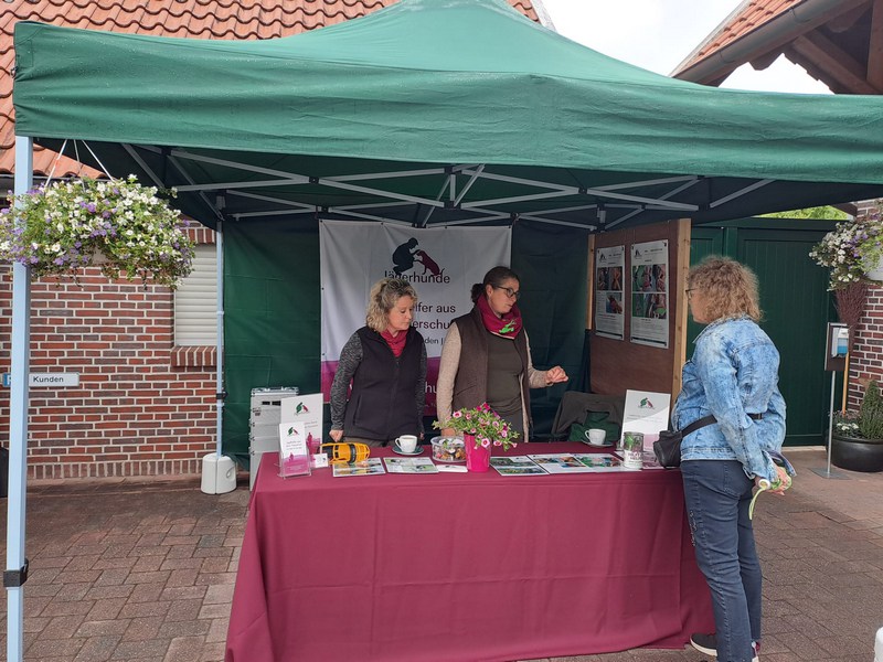 Am Samstag, dem 1. Juli 2023 war Jägerhunde e.V. mit einem Stand beim "Tag der offenen Tür" anlässlich dem 5-jährigen Bestehen der Physio- und Reha Abteilung der Tierarztpraxis Dr. Gunnar Habben in Augustfehn, vertreten.