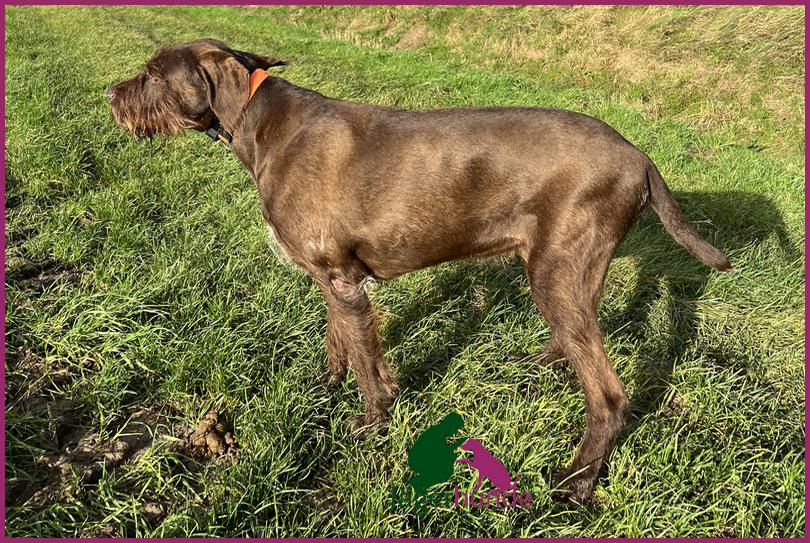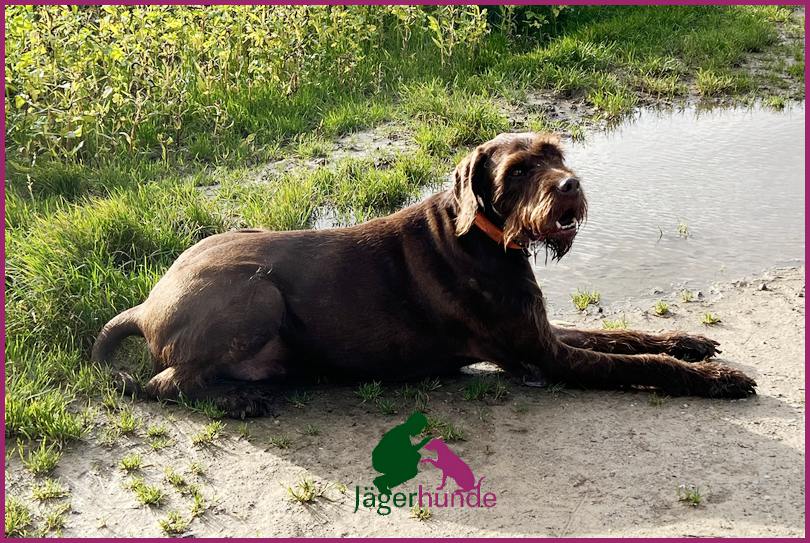 Hunter, der Pudelpointer Rüde kommt aus jagdlicher Leistungszucht und wurde jagdlich ausgebildet und aktiv jagdlich geführt. Hunter hat die VJP erfolgreich abgelegt.
