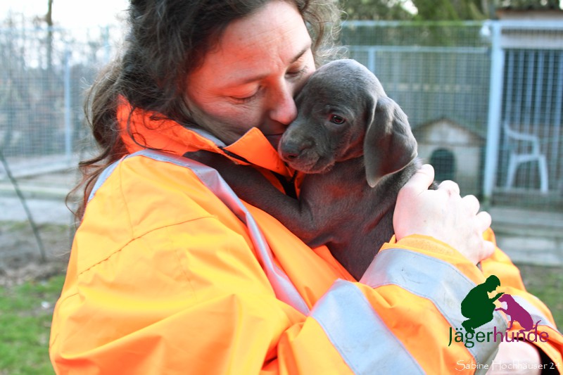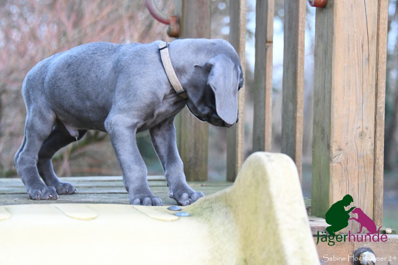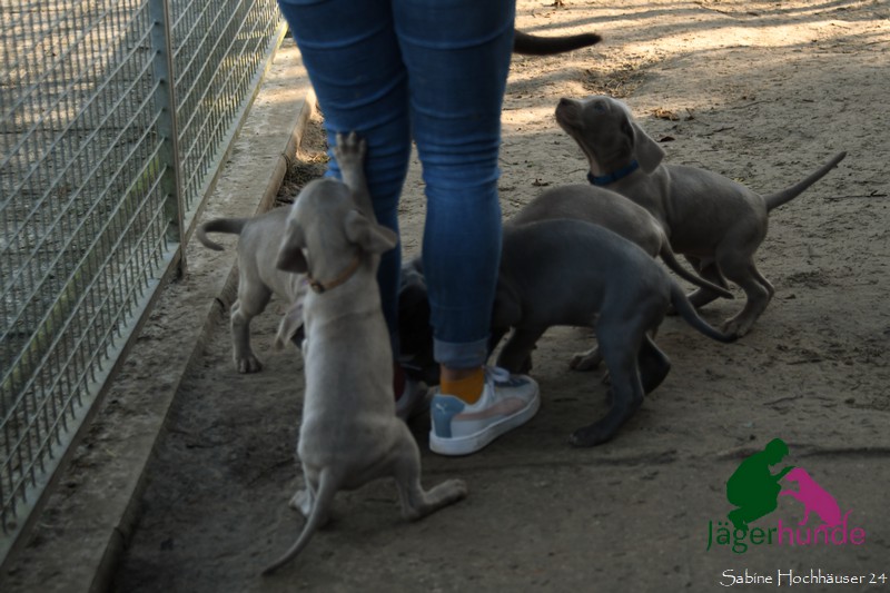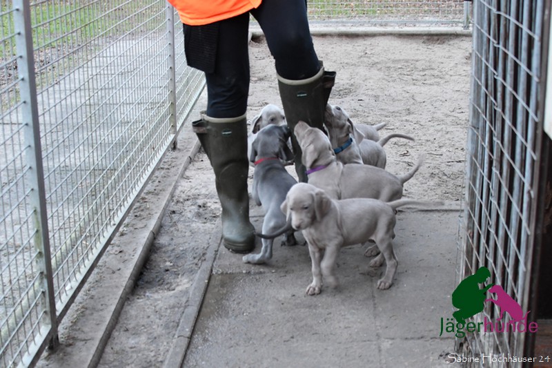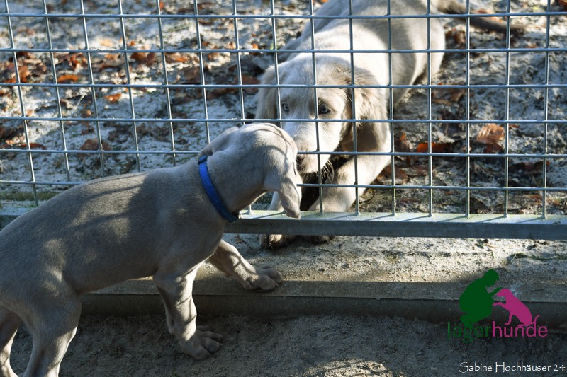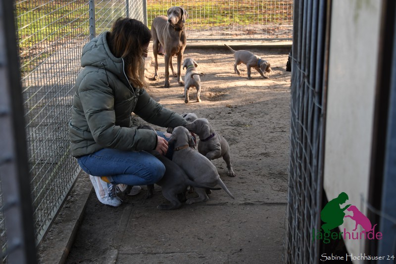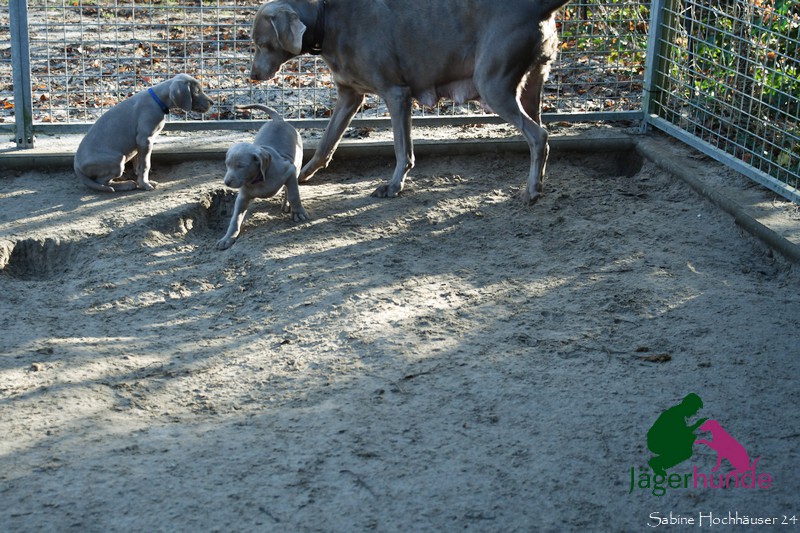 Julchen hat sie alle gelassen im Blick. Heute durften sogar die älteren Welpen von Britta (Weimaraner Langhaar, 11 Wochen alt) einen Blick auf die Wikinger werfen ohne das Jule Zirkus gemacht.