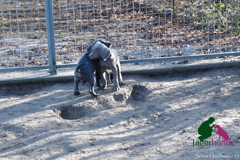 Im Auslauf arbeitet die vorwitzigen Welpenschar im Tiefbau. Im Sandboden lässt sich so herrlich buddeln und so entstehen kleine Fallgruben oder sie planen sich nach Australien durchzugraben.