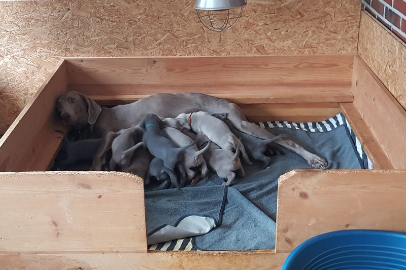 Quasi ein Herzschlag später war Jule da! Und wie sie da war! Kugelrund! Schnell war klar, da kommen viele kleine Pfoten. Für uns kein Thema, ich war das durch meine Verbandszucht und Arbeit im tiermedizinischen Bereich gewohnt. Nun hieß es warten!
